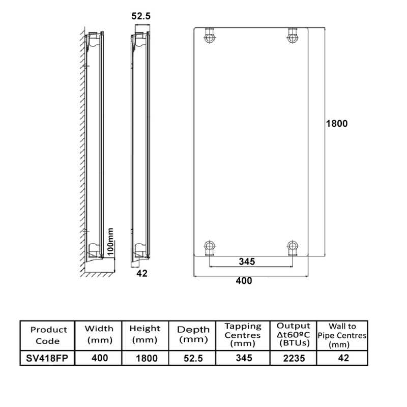 Designed to match the design of the standard Softline Deco horizontal panel radiators, these vertical models are only available in K2 (Double Convector, DC, Type 22) format; a front and back panel with a double set of convector fins.