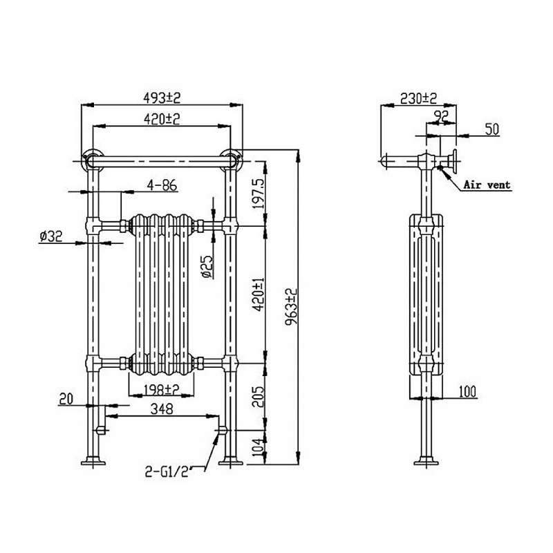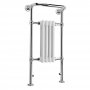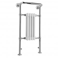 The MaxHeat Redruth Traditional Radiator Towel Rail, 963mm High x 493mm Wide, White/Chrome is part of the Redruth collection of heated towel warmers from the MaxHeat Designer range. This traditionally-styled Redruth radiator towel rail includes a small column radiator insert to help heat the whole bathroom and not just the towels. Manufactured from mild steel, the most popular material for radiator and towel rails, this model offers superb value-for-money and durability.