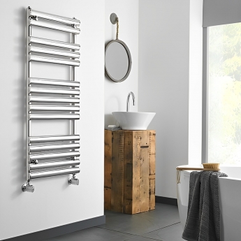 Stainless steel is a superior material to a common mild steel towel rail for many reasons - all of which mean these rails are offered with longer guarantees than a normal steel equivalent. Some of the leading manufacturers of stainless steel towel rails include Radox, Reina, MaxHeat and DQ Heating. Two of the most common finishes of stainless steel are either brushed or polished, and they are usually centrally-heated or electric-only. Choose from the various shapes, sizes, styles and manufacturers from the filters on this page to narrow down our large range of stainless steel towel rails.