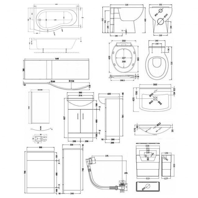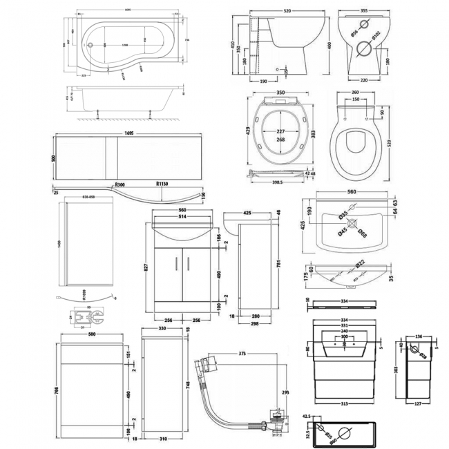 - Includes curved B-shaped bath screen and 1700mm acrylic front panel