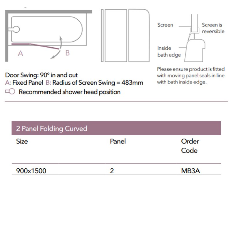 Merlyn's "Ionic" two panel folding curved bath screen is a stunning addition to your bathtub, transforming it into a modern shower area. With only the necessary amount of framing to support the glass panels and fully concealed fittings, this beautiful clear screen lets you enjoy your surroundings while showering. Merlyn's unique "Mershield Stayclear" glass encourages dirt and soap to slide away and makes the surface easy to wipe clean. In addition, the panels are manufactured using 6mm thick safety glass, ensuring they're able to endure all but the most severe impacts. This screen is intended for use with standard, straight-edged baths and its folding panel reduces the amount of space necessary for it to open into. Merlyn's confidence in the quality of the "Ionic" is such that they include a lifetime guarantee with every purchase, letting you buy this beautiful bath shower screen with confidence.