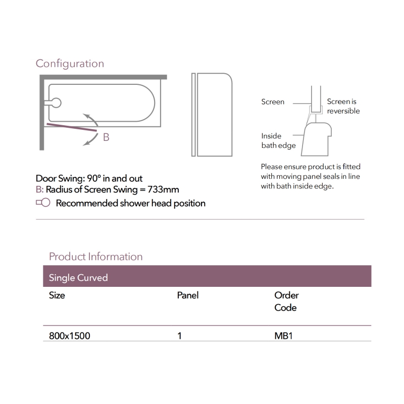 Merlyn's "MBox" single curved corner bath screen is the perfect addition for anybody looking to utilise their bathtub as a shower area. This is a flat screen, making it an appropriate choice for the vast majority of rectangular baths, with a curved corner that results in a softer appearance. A gleaming chrome finish on the minimalist frame is a great match for a chrome shower and bath taps. The screen is reversible, meaning it can be installed left or right handed depending on how your bath has been installed. 6mm thick safety glass makes the "Mbox" a tough and dependable screen but Merlyn also include a lifetime guarantee with every purchase, ensuring you'll enjoy it well into the future.