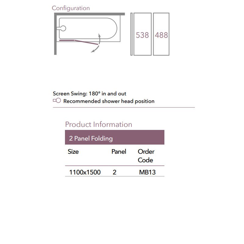 Merlyn Two Folding Bath Screen 1500mm H x 1100mm W - 6mm Clear Glass | Thumbnail Image Merlyn Two Folding Bath Screen 1500mm H x 1100mm W - 6mm Clear Glass