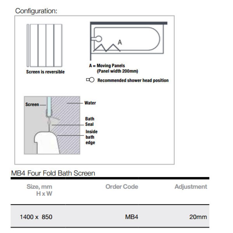 The best thing about a bath screen is the choice it gives you to do what you wish with your bath. Feel like having a shower The bath screen will stop water from flooding your floor. Alternatively, you can fold the bath screen back and climb into a warm, soapy bath, letting you easily climb in and out and giving you the option to close it should the bath water be a little too high. The 4 moving panels of this Merlyn Bath Screen work in concert to fold back and forth with ease, and it saves space in your bathroom by not being a screen that swings outwards.