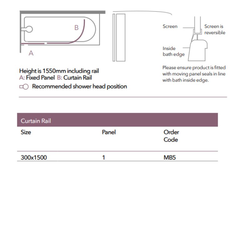 The Merlyn Mbox Curtain Rail Fixed Bath Screen 1500mm H x 300mm W - 6mm Glass is a model from the MB collection of over-bath shower screens by Merlyn, one of the leading showering brands in the UK. Designed to add style and simplicity to your bath, and helping transform it into a dual-purpose shower enclosure, this bath screen is extremely popular and competitively-priced. Supplied with a lifetime guarantee, this market-leading MB5 model is certain to create maximum impact in your bathroom.