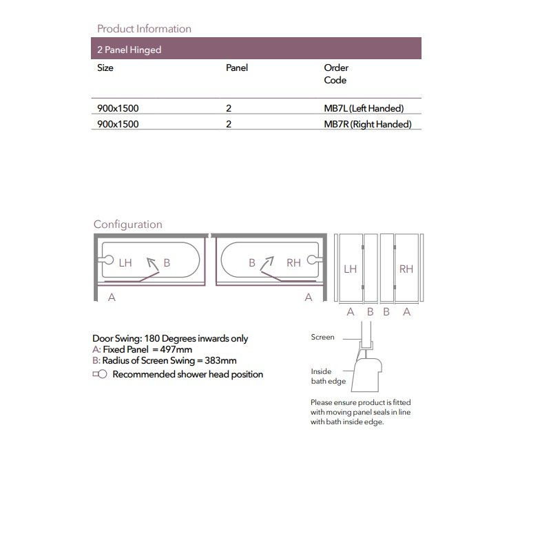The Merlyn Two Panel Square Hinged Bath Screen 1500mm H x 900mm W Right Handed - Clear Glass is a model from the MB collection of over-bath shower screens by Merlyn, one of the leading showering brands in the UK. Designed to add style and simplicity to your bath, and helping transform it into a dual-purpose shower enclosure, this bath screen is extremely popular and competitively-priced. Supplied with a lifetime guarantee, this market-leading MB7R model is certain to create maximum impact in your bathroom.