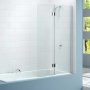 - Frameless 2 panel screen with designer chrome hinges