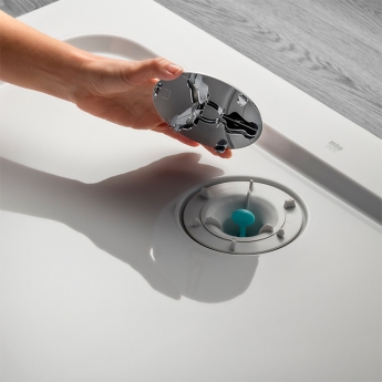 - Close-up images of the waste area show the central position of a rectangular model - the waste hole is positioned in the corner on quadrant shapes