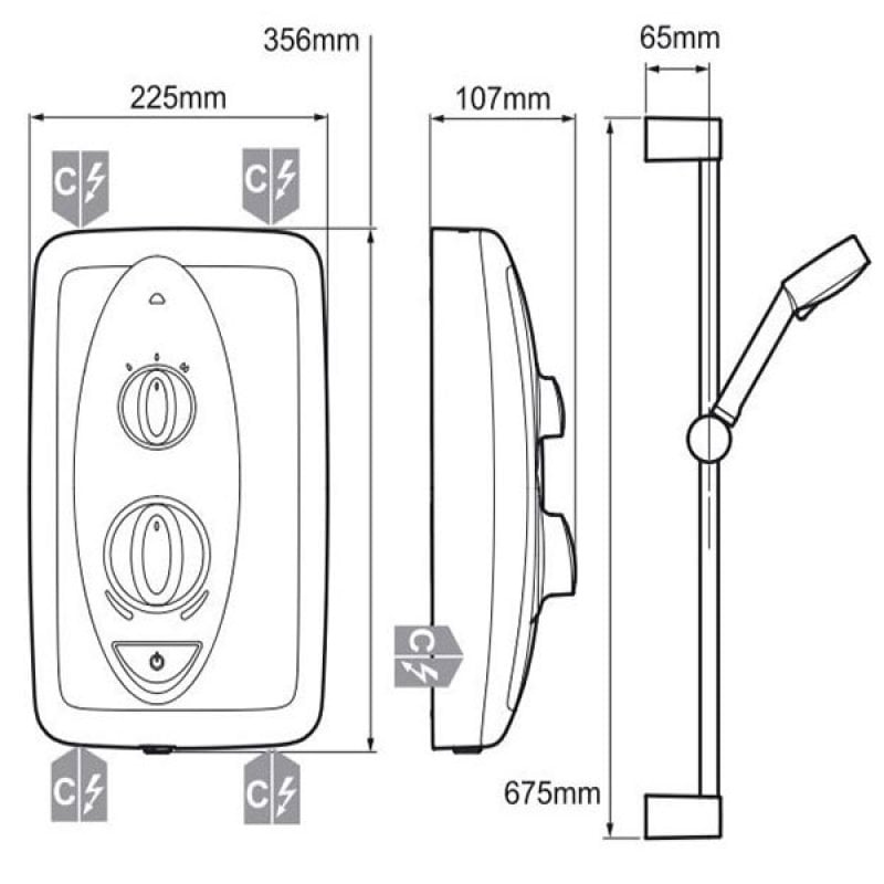 - On/off push button for ease of use, with choice of 3 flow settings. Shower on demand