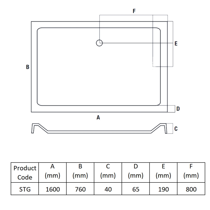 MX Elements 40mm Rectangular Shower Tray - 1600mm x 760mm