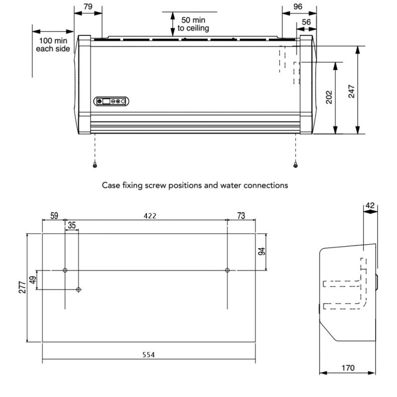• Water connections (15mm compression) are on the right-hand side and the system pipework