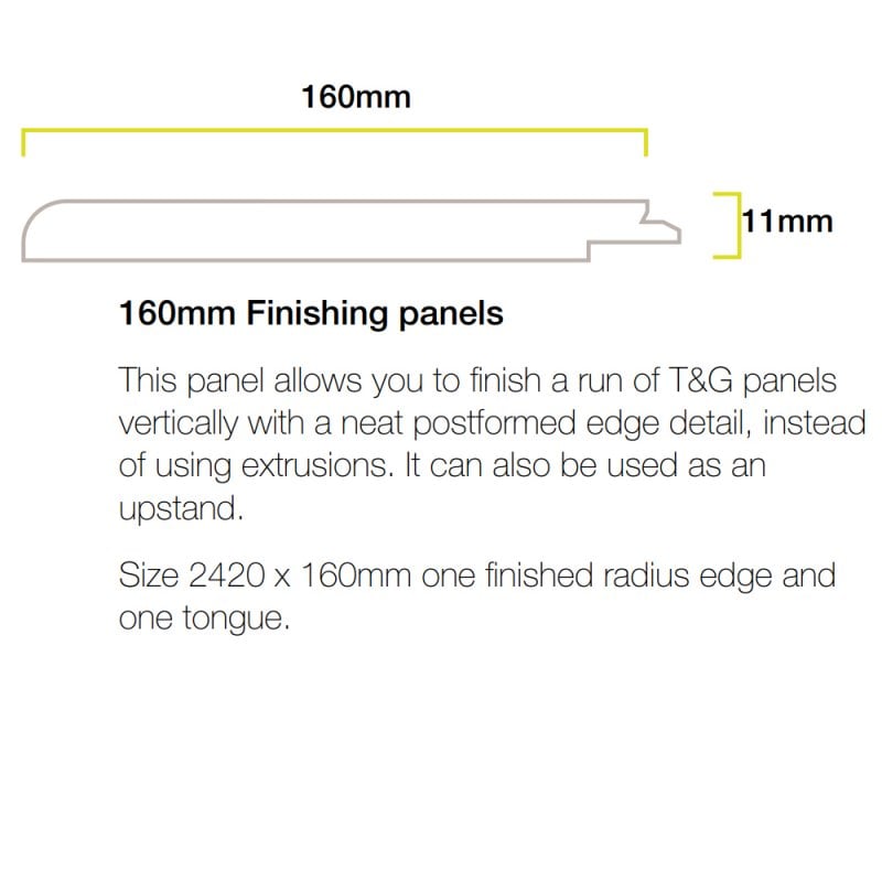 • This panel allows you to finish a run of T&G panels vertically with a neat postformed edge detail, instead of using extrusions It can also be used as an upstand