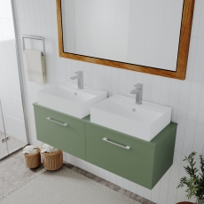 The twin Arno vanity unit effortlessly showcases the clever design, allowing greater storage space by seamlessly doubling up on the popular 600mm version. This beautifully-designed cabinet comes in a variety of contemporary colours, with the option to switch out the handles to match taps and other accent colours in your bathroom.