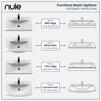 - Choose from 1 of 4 different ceramic basin options to further customise the look