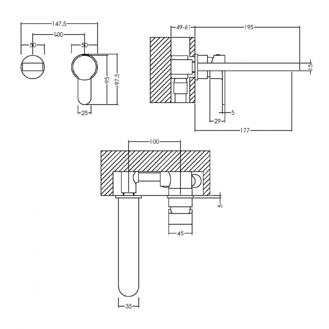 Nuie Arvan 2-Hole Wall Mounted Basin Mixer Tap without Plate - Chrome | Thumbnail Image Nuie Arvan 2-Hole Wall Mounted Basin Mixer Tap without Plate - Chrome