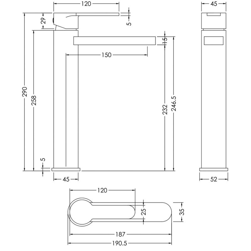 • Sleek high-rise design makes this tap perfect for use with countertop vessel basins