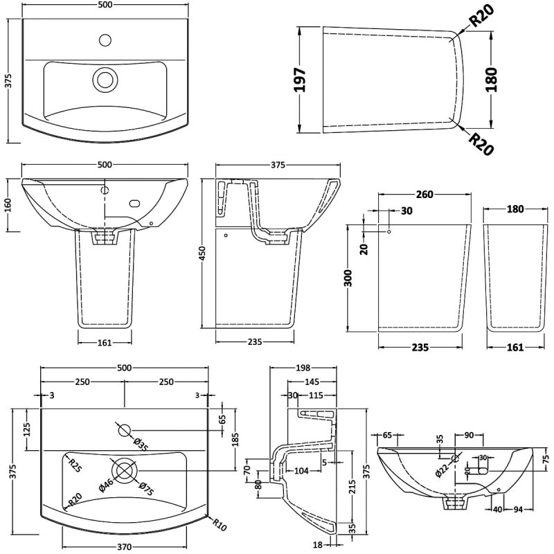 This fabulous basin has a semi- pedestal which is not only a great way to conceal pipework but also gives the illusion of extra space whilst offering easier cleaning access!
