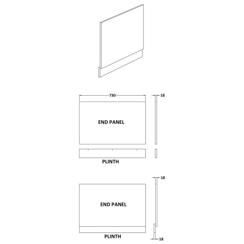 Nuie Athena Bath End Panel 560mm H x 730mm W - Anthracite Woodgrain | Product Image Nuie Athena Bath End Panel 560mm H x 730mm W - Anthracite Woodgrain