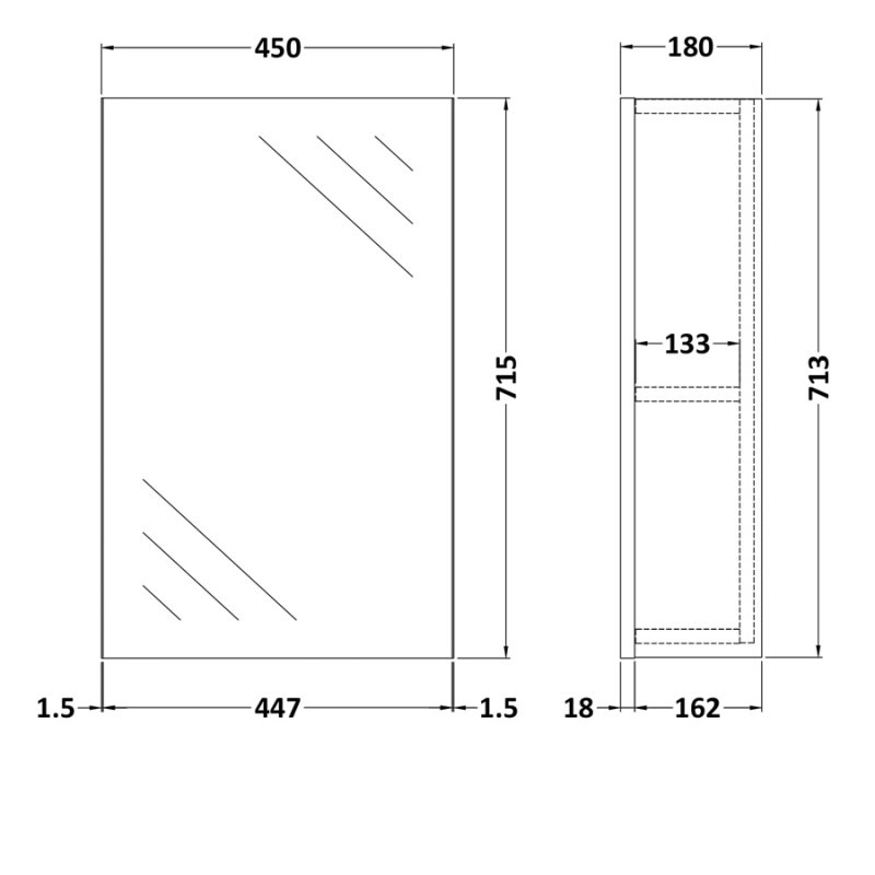 Athena 450mm 1-Door Mirrored Bathroom Cabinet | Product Image