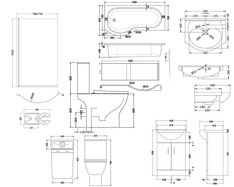 • Taps, Waste and Bath End Panel and Toilet Fixing Kit is not included (See the You May Need)