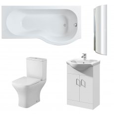 Nuie Ava Complete Furniture Suite with Vanity Unit and P-Shaped Shower Bath 1700mm RH