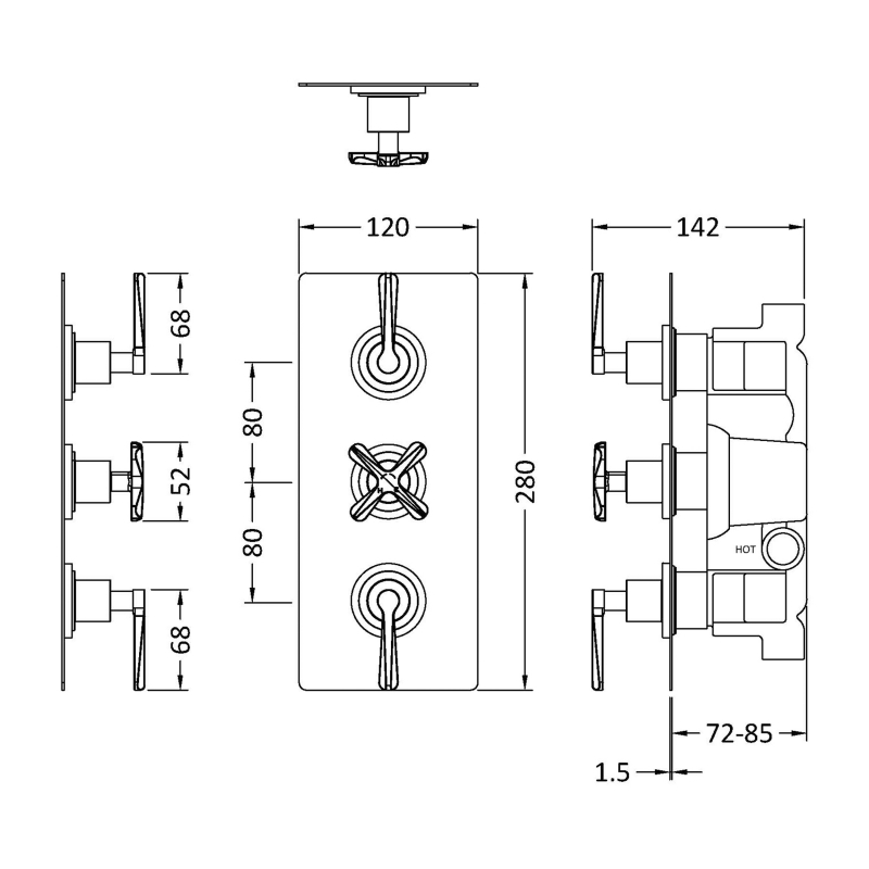 Nuie Aztec Thermostatic Concealed Shower Valve with Diverter Triple Handle - Brushed Brass | Thumbnail Image Nuie Aztec Thermostatic Concealed Shower Valve with Diverter Triple Handle - Brushed Brass