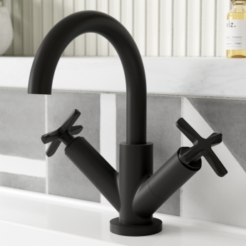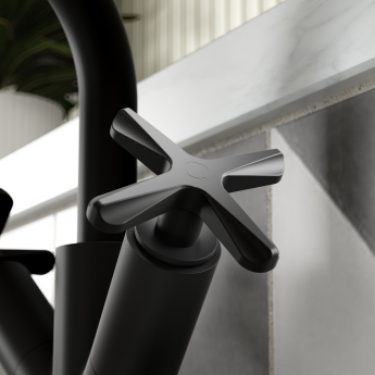 Part of Nuie's design-led Aztec collection, this basin mixer includes dual crosshead handles with a contemporary twist. The eye-catching matt black finish offers the perfect contrast against a white basin. The tap comes complete with a colour-matched press-top basin waste at no extra cost.