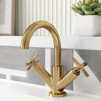 Finish off your bathroom basin with the Nuie Aztec Mono Basin Mixer Tap with Waste in Brushed Brass.