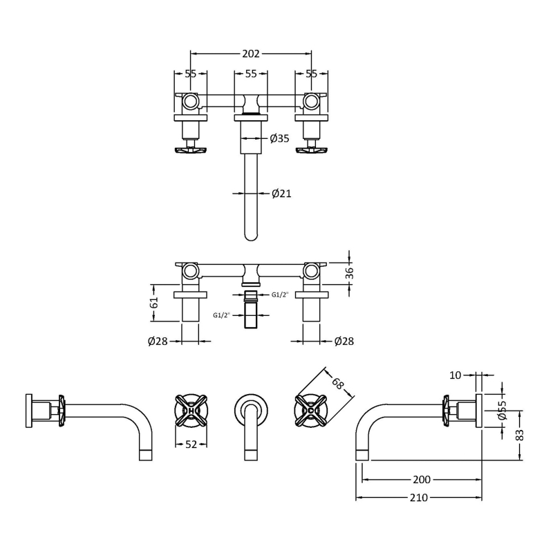 Elegant and bold, we love the style of the Nuie Aztec 3-Hole Wall Mounted Basin Mixer Tap in Brushed Brass.