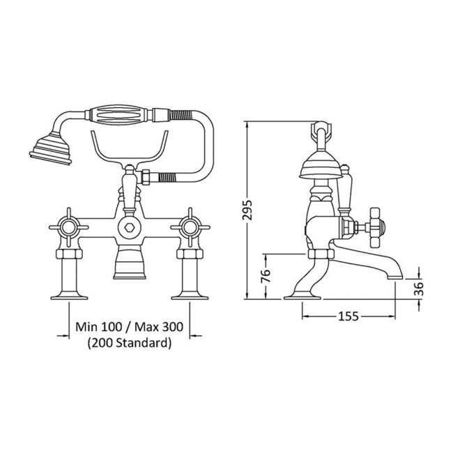 Finished with two tap holes, this bath tap also comes with a shower kit, which means that you can use it to both shower and bath.