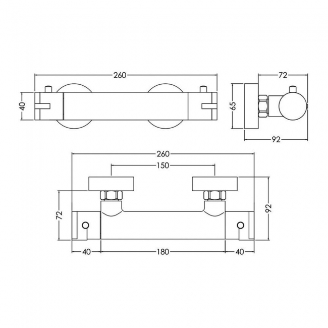 Nuie Binsey Round Thermostatic Bar Shower Valve Bottom Outlet - Chrome | Thumbnail Image Nuie Binsey Round Thermostatic Bar Shower Valve Bottom Outlet - Chrome