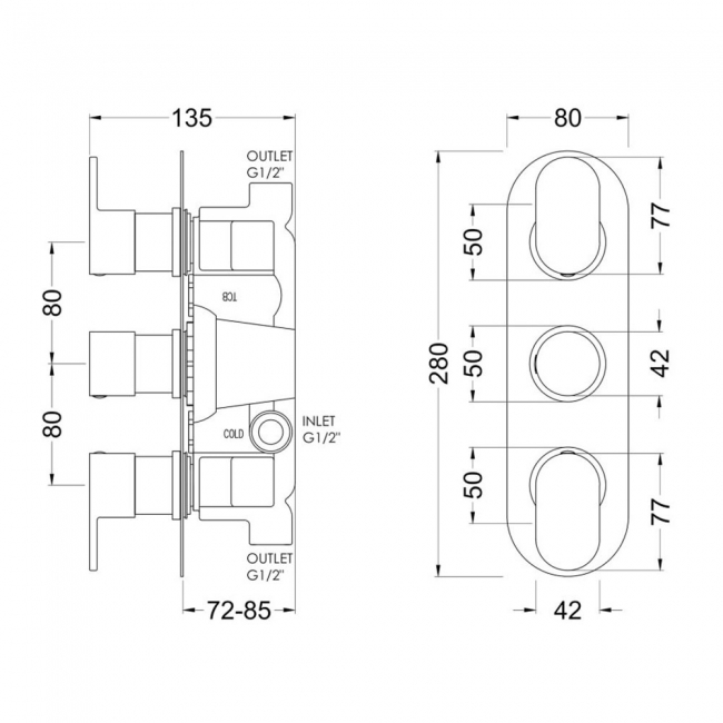 Nuie Binsey Thermostatic Concealed Shower Valve Triple Handle - Chrome | Thumbnail Image Nuie Binsey Thermostatic Concealed Shower Valve Triple Handle - Chrome
