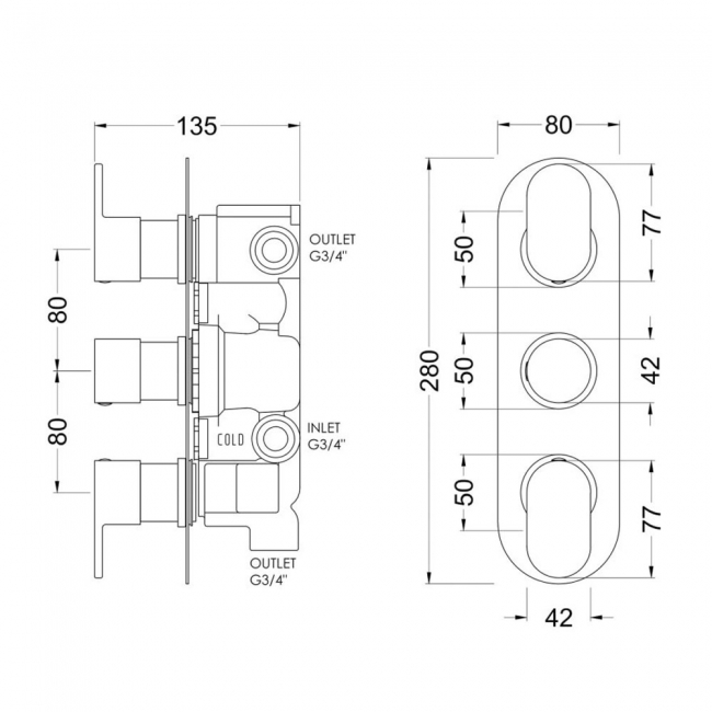 Nuie Binsey Thermostatic Concealed Shower Valve with Diverter Triple Handle - Chrome | Thumbnail Image Nuie Binsey Thermostatic Concealed Shower Valve with Diverter Triple Handle - Chrome