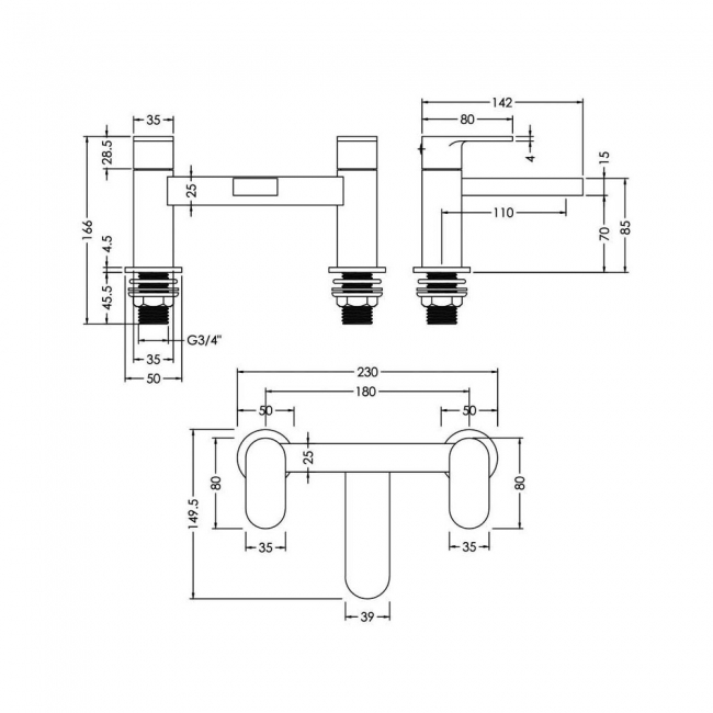 Nuie Binsey 3-Hole Deck Mounted Bath Filler Tap - Chrome