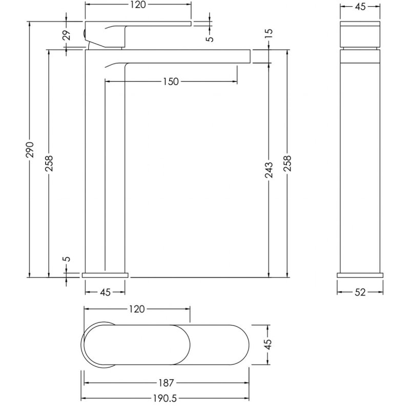 - Sleek high-rise design makes this tap perfect for use with countertop vessel basins