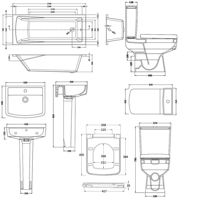 Nuie Bliss Complete Bathroom Suite with Rectangular Bath 1700mm x 700mm