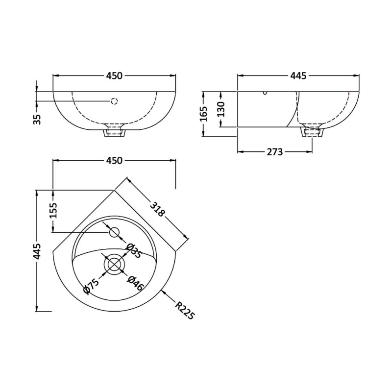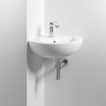- Innovative corner-fitting basin suitable for smaller bathrooms and cloakrooms