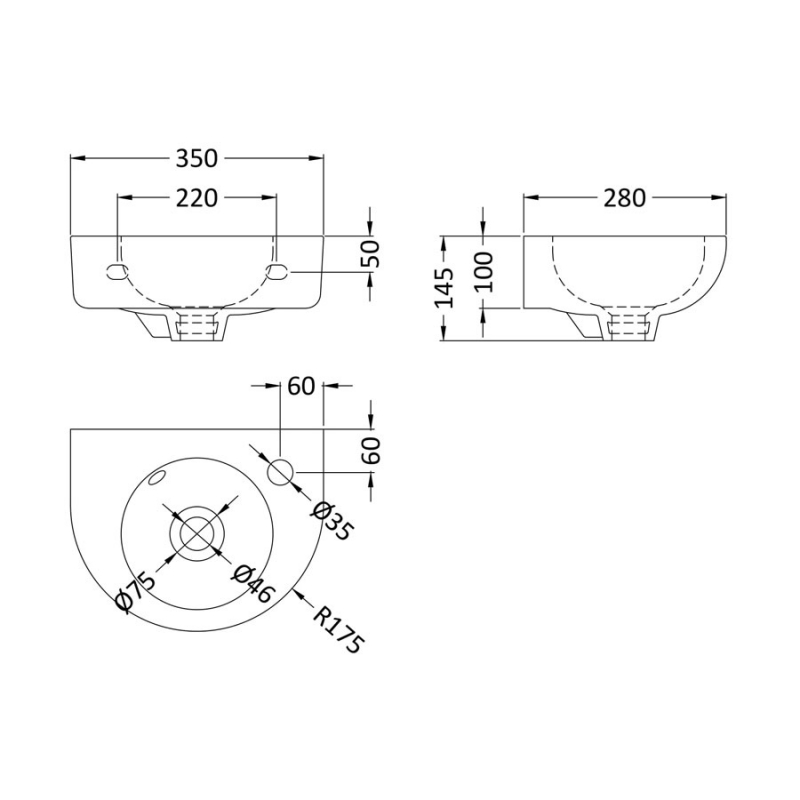 • Rounded cloakroom basin suitable for smaller bathrooms