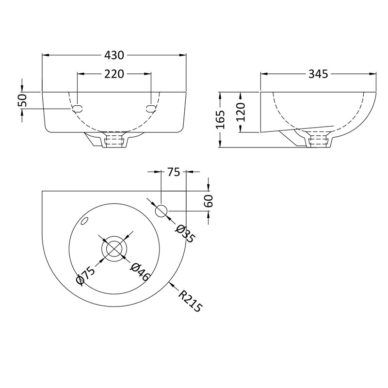 Nuie Melbourne Rounded Wall Hung Cloakroom Basin 430mm Wide - 1 Tap Hole | Thumbnail Image Nuie Melbourne Rounded Wall Hung Cloakroom Basin 430mm Wide - 1 Tap Hole | Thumbnail Image Nuie Melbourne Rounded Wall Hung Cloakroom Basin 430mm Wide - 1 Tap Hole