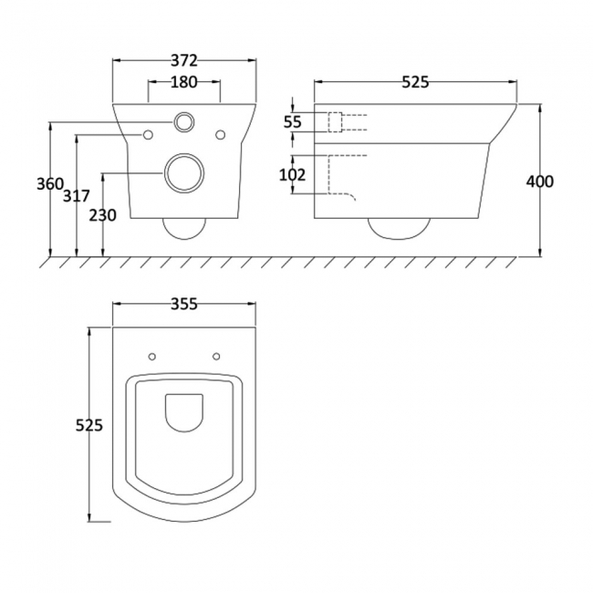 • Wall hung design gives the illusion of more floor space and makes the bathroom easier to clean