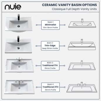 - Choose between 4 modern ceramic basin layouts to add a contemporary twist to the style of the unit