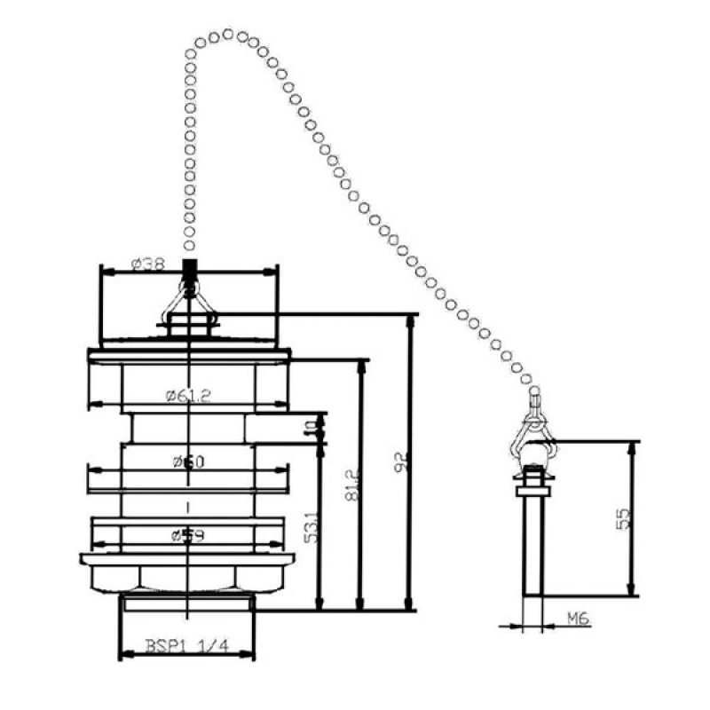 Nuie Contract Basin Waste with Brass Plug and Ball Chain Chrome - Slotted