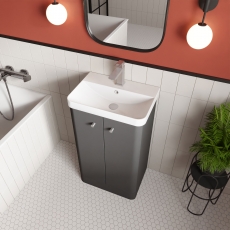 - Design-led, minimalist vanity unit with slightly reduced depth for smaller spaces