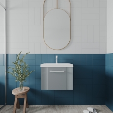 - Art Deco-era inspired wall-hung vanity unit design with part-fluted cabinet front