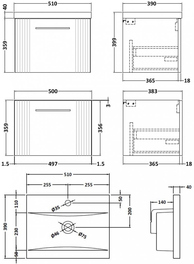 - Vanity Unit and Basin only - taps, traps and waste are sold separately