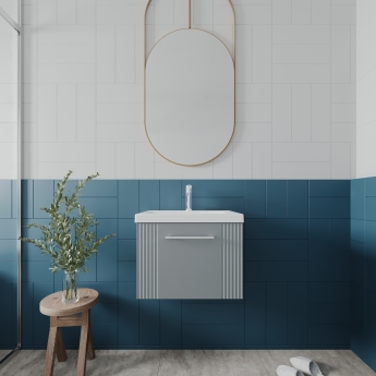 Nuie Deco 500mm 1-Drawer Wall Hung Vanity Unit - Satin Grey - Mid-Edge