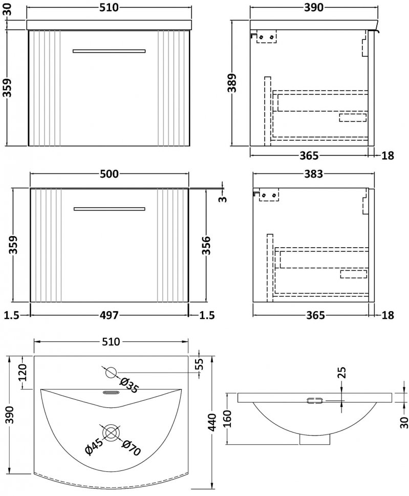 - Vanity Unit and Basin only - taps, traps and waste are sold separately