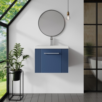 Nuie Deco 500mm 1-Drawer Wall Hung Vanity Unit - Satin Blue - Curved