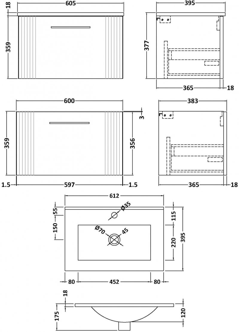 Deco 600mm 1-Drawer Wall Hung Vanity Unit with Countertop | Product Image