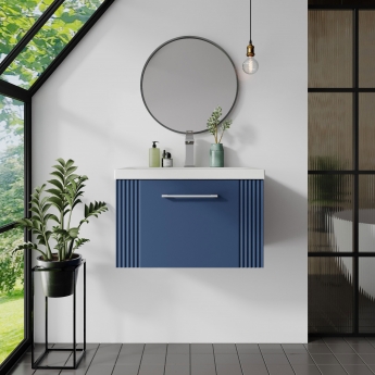 Nuie Deco 600mm 1-Drawer Wall Hung Vanity Unit - Satin Blue - Minimalist